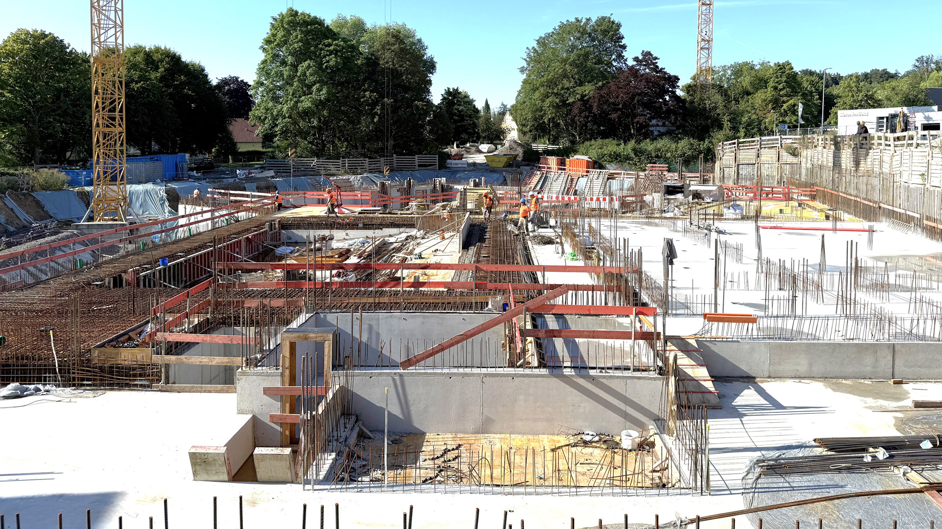 Der Neubau des Gartenhallenbades in Leinfelden-Echterdingen entsteht an der Stuttgarter Straße nachdem das bisherige Hallenbad aus dem Jahr 1964 abgerissen wurde.