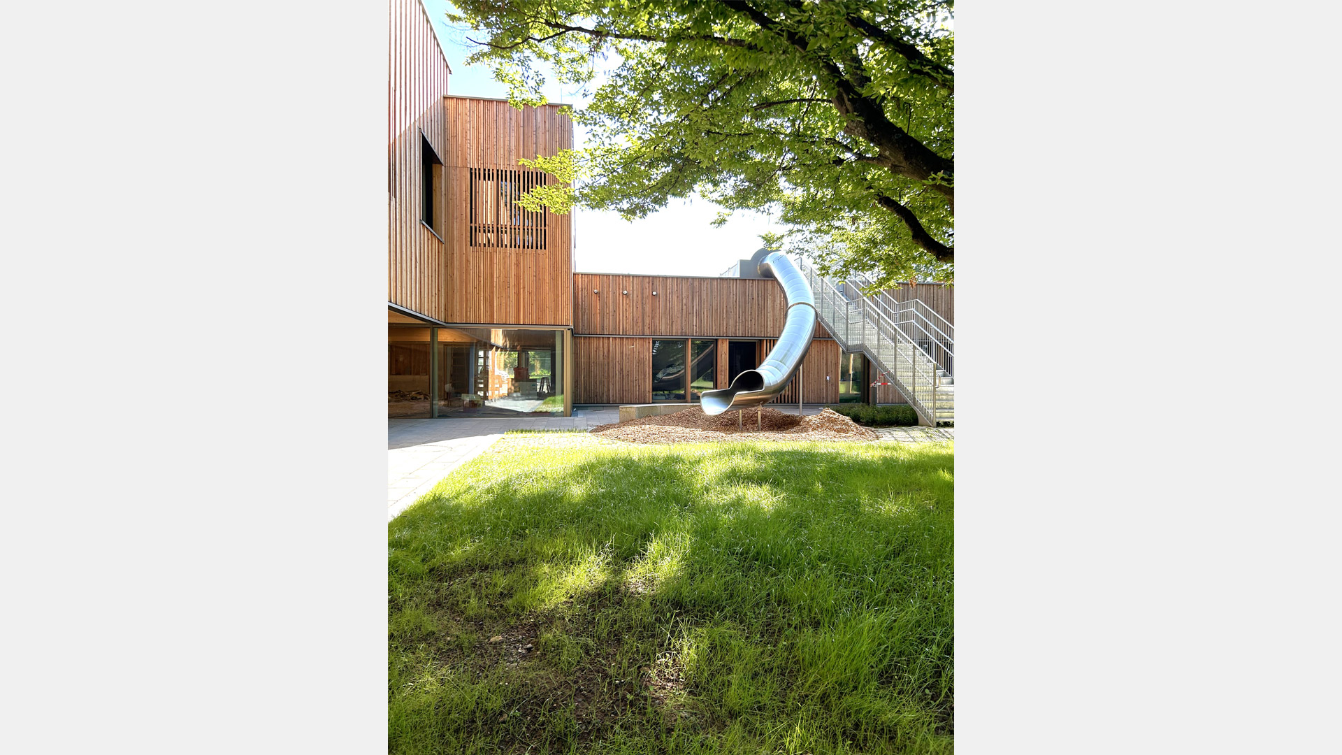 Zukünftig werden bis zu 124 Kinder in 7 Gruppen betreut und gefördert. Das Raumprogramm umfasst u.a. Gruppenküchen, Bibliothek, Sandzimmer, Bewegungsraum, Holzwerkstatt etc. Die Mahlzeiten werden in einer Produktionsküche täglich frisch zubereitet. Ebenfalls werden Verwaltungs- und Personalaufenthaltsbereiche errichtet.